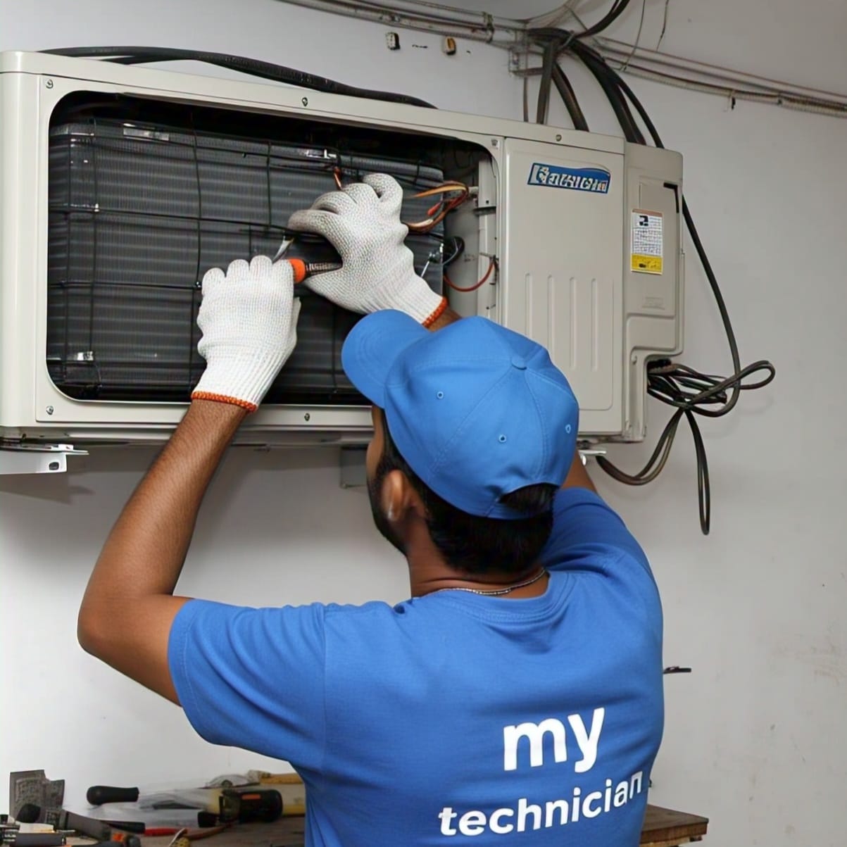 The technician completes the repair work